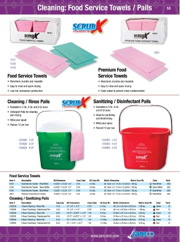52 Cleaning: Pails Cleaning: Food Service Towels / Pails 53